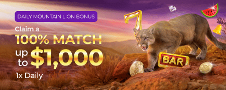 | Daily Mountain Lion | 100% up to $1,000 | No | $100 | Once per day | 60x |